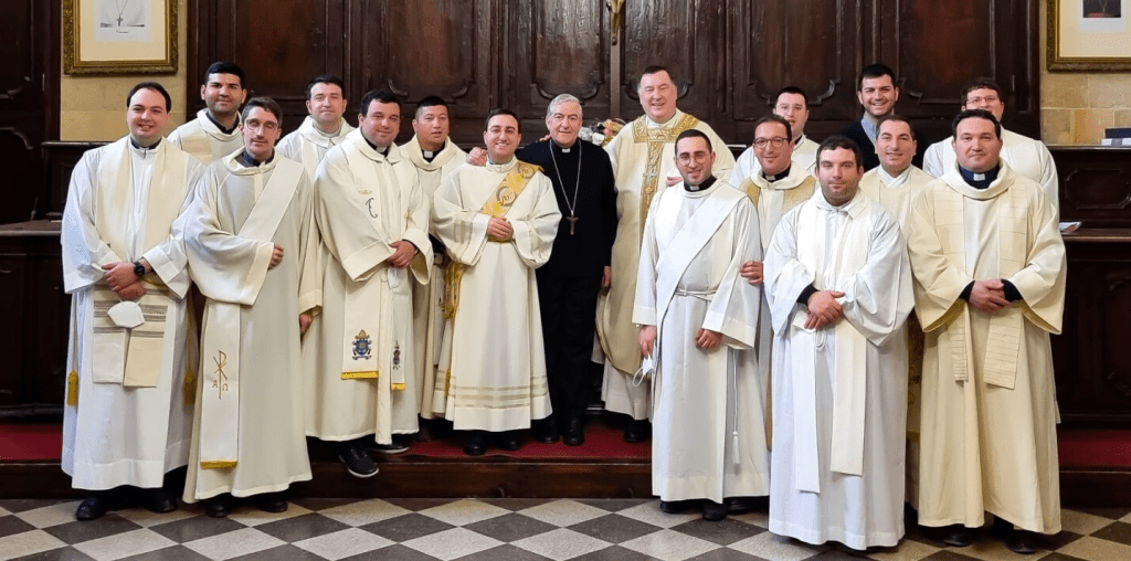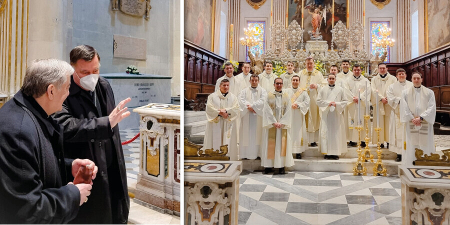 Il gruppo di giovani sacerdoti e diaconi è guidato dall’arcivescovo metropolita di Catanzaro-Squillace, mons. Claudio Maniago, già ausiliare di Firenze e vescovo di Castellaneta, principale artefice della nuova edizione del Messale Romano nella sua qualità di presidente della Commissione liturgia della Conferenza episcopale italiana. Mons. Maniago è stato nominato arcivescovo di Catanzaro-Squillace nello scorso mese di novembre; alla celebrazione della messa di inizio del suo ministero pastorale presso la diocesi calabrese, tenutasi nei primi giorni di gennaio, sono intervenuti, tra gli altri, l’arcivescovo di Firenze, il card. Giuseppe Betori, e l’arcivescovo di Napoli, mons. Domenico Battaglia, originario proprio della provincia di Catanzaro.